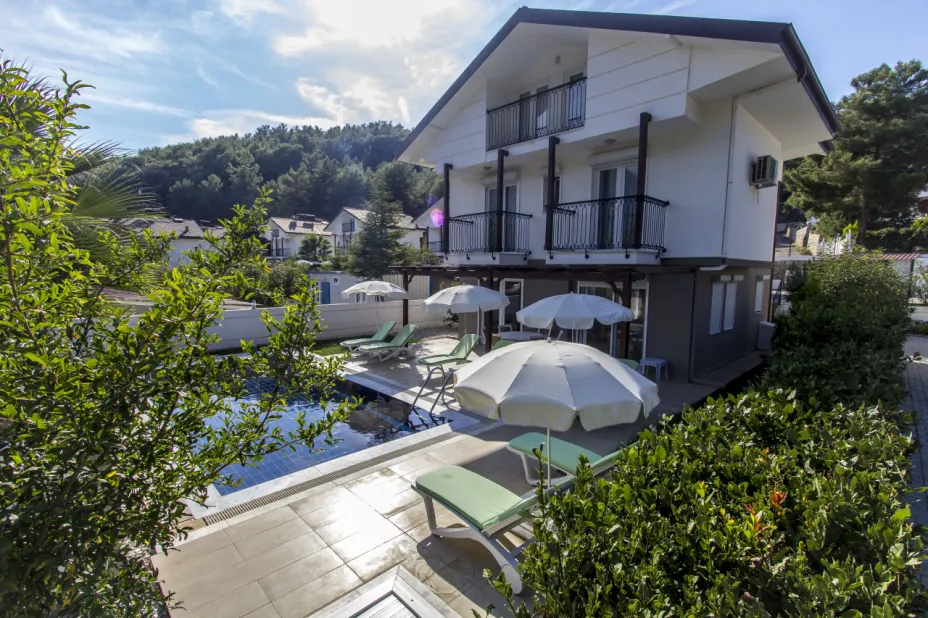 Villa Defne kendine ait havuzu, bahçesi ve 4 adet yatak odası ile 8 kişilik konaklama kapasitesine sahiptir. Konforlu odaları ile geniş aileler ve kalabalık gruplar için idealdir. Ölüdeniz Plajı’na 4 km mesafede bulunmaktadır. Dilediğiniz zaman 5 dakika yürüme mesafesinde olan Hisarönü çarşısını gezebilir, tüm alışveriş ve yiyecek ihtiyaçlarınız karşılayabilirsiniz.